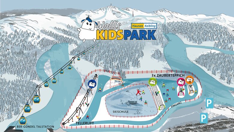 Nový dětský park, Wollis Kids Park, čeká na všechny začátečníky a děti na spodní stanici osmi-lanovky. Mírný svah, 3 pásové přepravníky a vlek vhodný pro začátečníky nabízí perfektní podmínky pro přípravu na lyžařské či snowboardové dobrodružství na našich čtyřech propojených horských oblastech Schladming-Dachsteinu. Dětský park nabízí spoustu her a zábavy pro chvíle, kdy budete potřebovat pauzu a naše restaurace AlmArenA je perfektní pro zahřátí u tradičního, nadýchaného trhance.