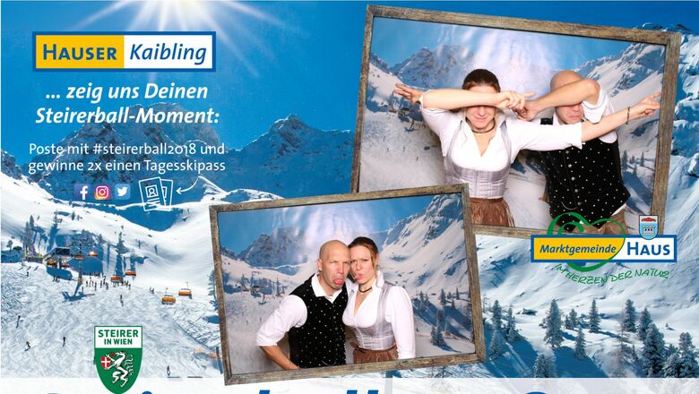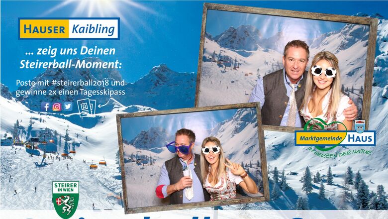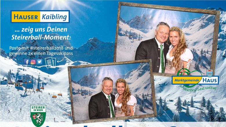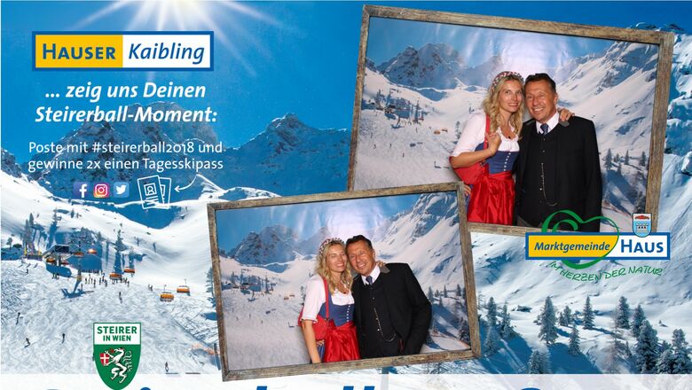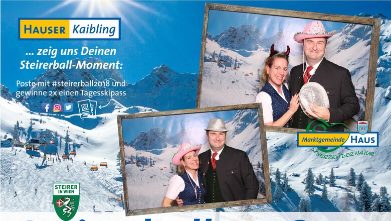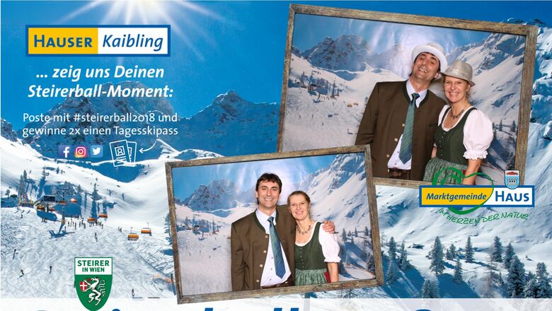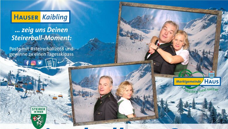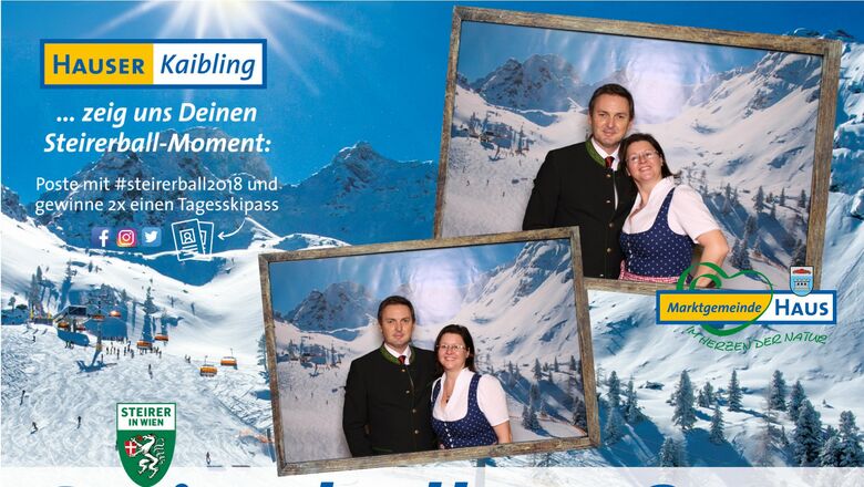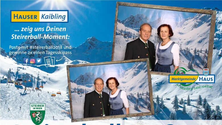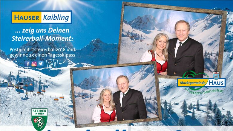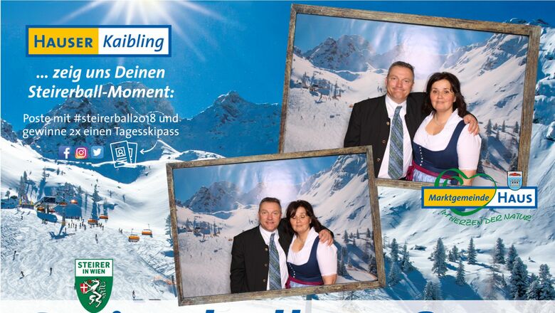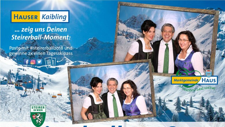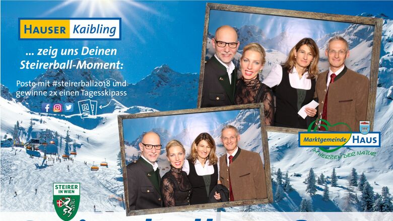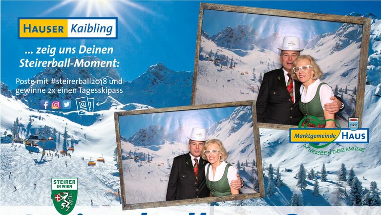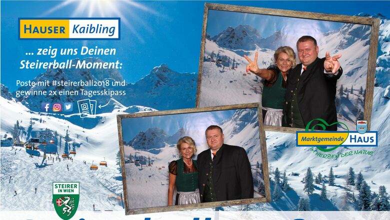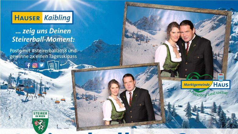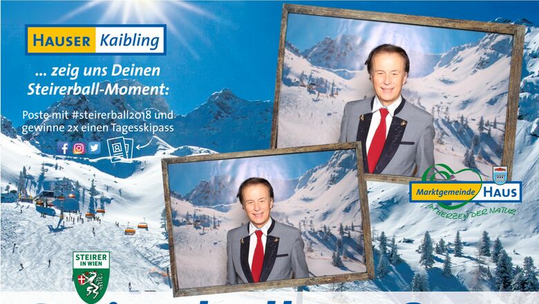 Die diesjährige Gastregion Haus im Ennstal gemeinsam mit dem Skiberg Hauser Kaibling sorgten für Winterstimmung in der Bundeshauptstadt. Das wurde bereits beim Eingang in die Hofburg sichtbar. Geschäftsführer der Hauser Kaibling Seilbahnen Arthur Moser brachte echten Hauser Kaibling Schnee, auf dem ein moderner PistenBully platziert war, mit nach Wien. Im Foyer sorgte eine 6er-Sesselbahn für das Foto-Highlight des Abends. Die Lounge wurde in Anlehnung an das neue Aprés Ski & Restaurant Highlight am Hauser Kaibling kurzerhand in die „AlmArenA“ umfunktioniert und sorgte für Aprés Ski Stimmung in der Wiener Hofburg. Kulinarisch stand das Almlamm-Projekt im Fokus mit kulinarischen Highlights wie Almlamm-Burger oder Lamm-Ragout.