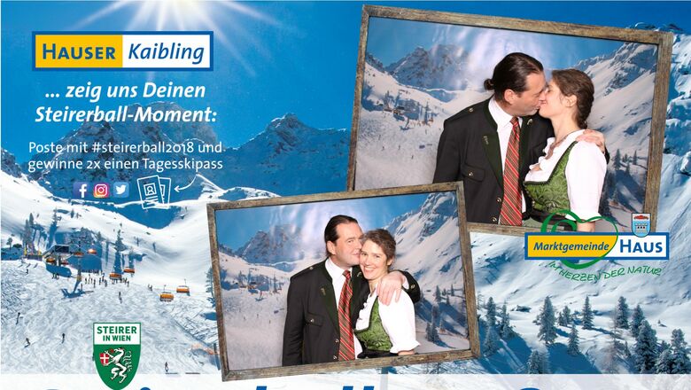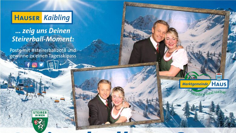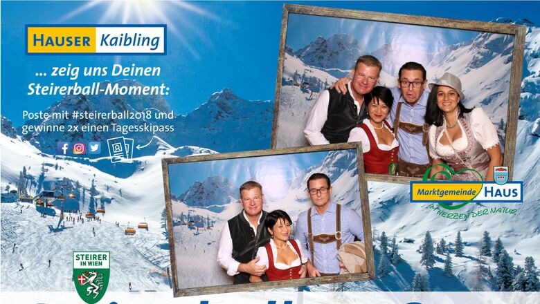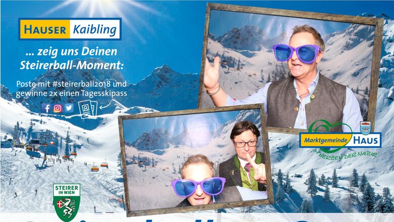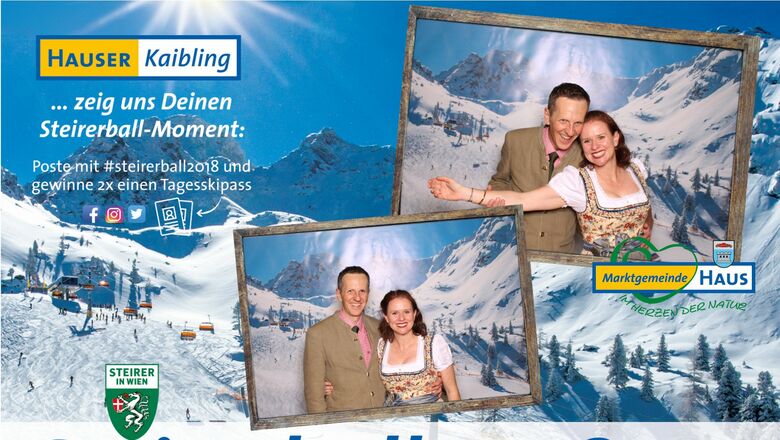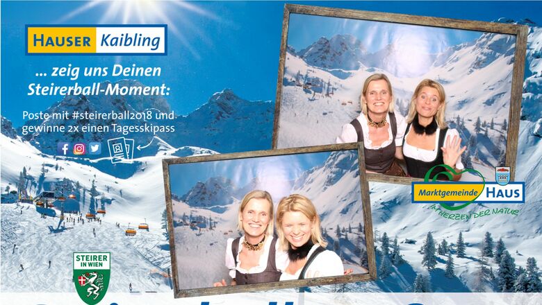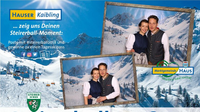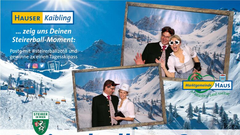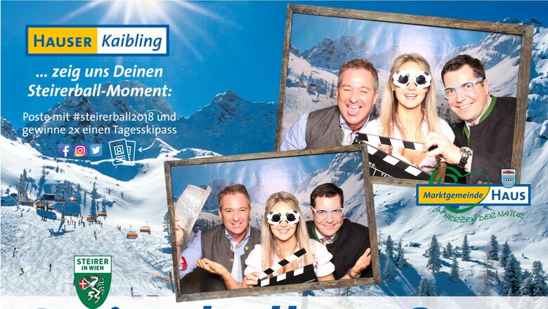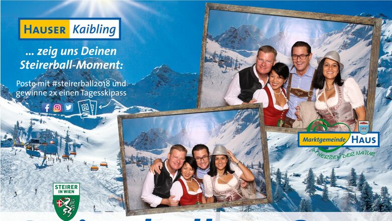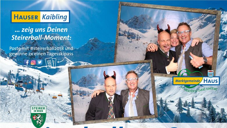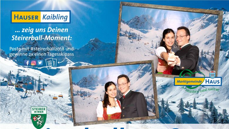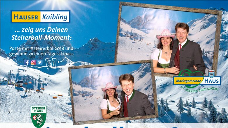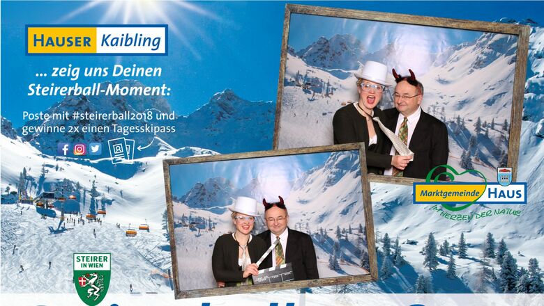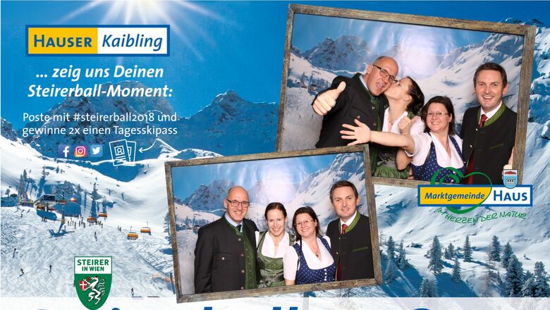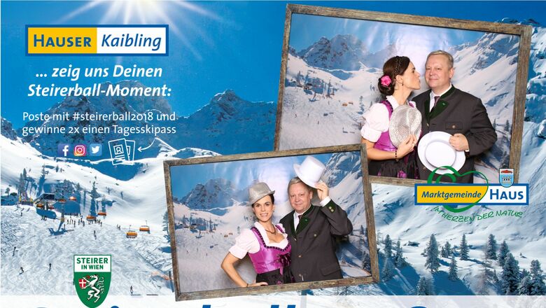 Die diesjährige Gastregion Haus im Ennstal gemeinsam mit dem Skiberg Hauser Kaibling sorgten für Winterstimmung in der Bundeshauptstadt. Das wurde bereits beim Eingang in die Hofburg sichtbar. Geschäftsführer der Hauser Kaibling Seilbahnen Arthur Moser brachte echten Hauser Kaibling Schnee, auf dem ein moderner PistenBully platziert war, mit nach Wien. Im Foyer sorgte eine 6er-Sesselbahn für das Foto-Highlight des Abends. Die Lounge wurde in Anlehnung an das neue Aprés Ski & Restaurant Highlight am Hauser Kaibling kurzerhand in die „AlmArenA“ umfunktioniert und sorgte für Aprés Ski Stimmung in der Wiener Hofburg. Kulinarisch stand das Almlamm-Projekt im Fokus mit kulinarischen Highlights wie Almlamm-Burger oder Lamm-Ragout.