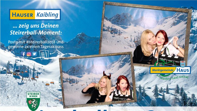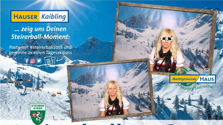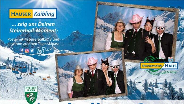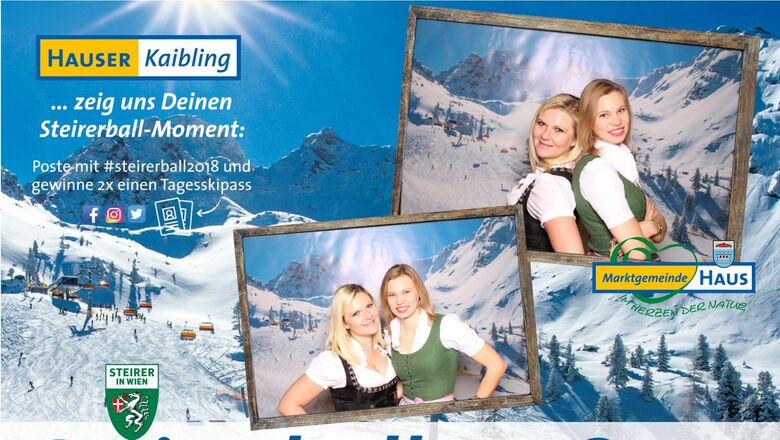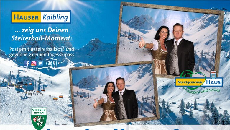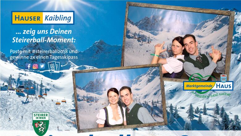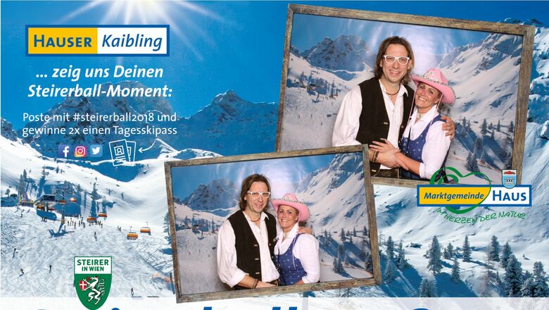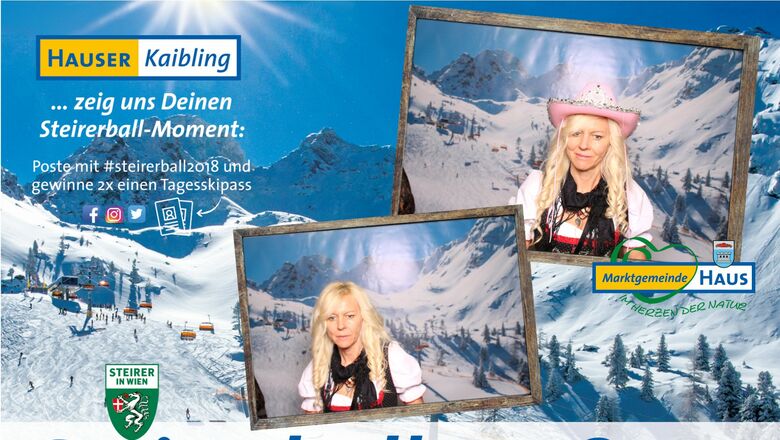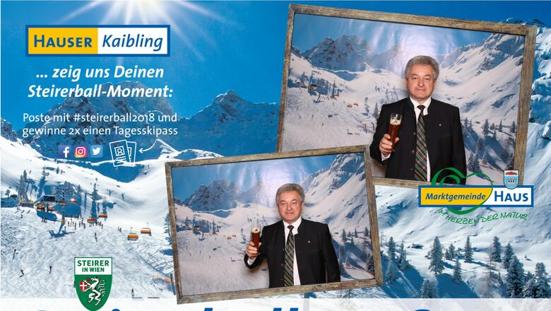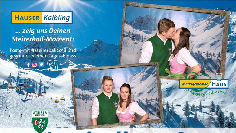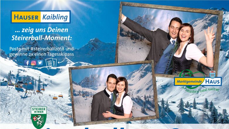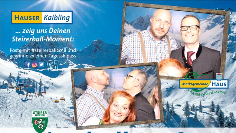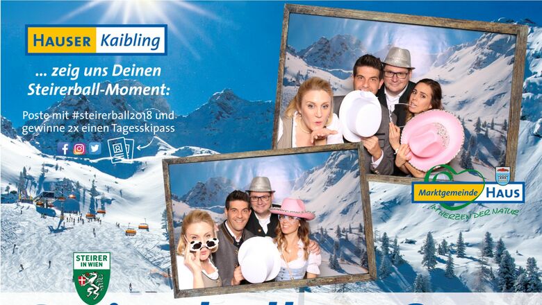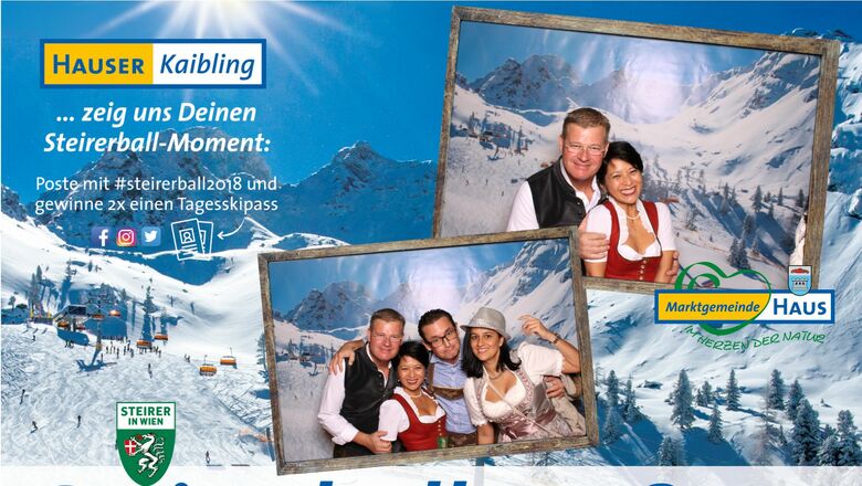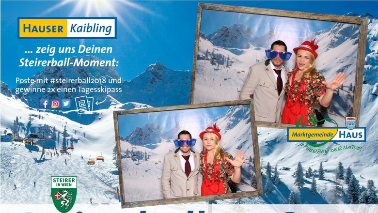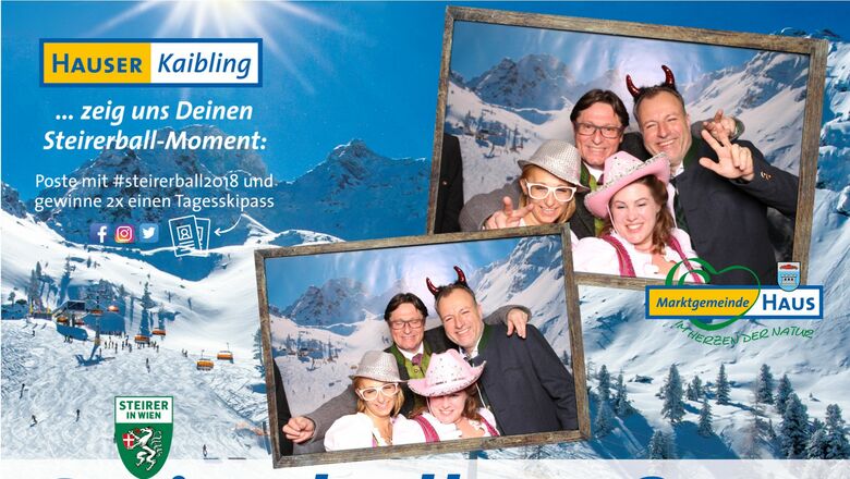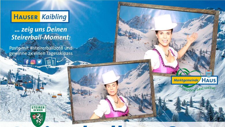 Die diesjährige Gastregion Haus im Ennstal gemeinsam mit dem Skiberg Hauser Kaibling sorgten für Winterstimmung in der Bundeshauptstadt. Das wurde bereits beim Eingang in die Hofburg sichtbar. Geschäftsführer der Hauser Kaibling Seilbahnen Arthur Moser brachte echten Hauser Kaibling Schnee, auf dem ein moderner PistenBully platziert war, mit nach Wien. Im Foyer sorgte eine 6er-Sesselbahn für das Foto-Highlight des Abends. Die Lounge wurde in Anlehnung an das neue Aprés Ski & Restaurant Highlight am Hauser Kaibling kurzerhand in die „AlmArenA“ umfunktioniert und sorgte für Aprés Ski Stimmung in der Wiener Hofburg. Kulinarisch stand das Almlamm-Projekt im Fokus mit kulinarischen Highlights wie Almlamm-Burger oder Lamm-Ragout.