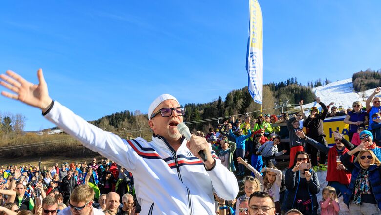 Gerry Friedle alias DJ Ötzi machte heute seinen zweiten Gipfeltour-Stopp am Fuße des Hauser Kaibling. Der Tiroler Sänger zündete vor den Toren der AlmArenA ein absolutes Hitfeuerwerk und sorgte mit seinen Hits wie „Ein Stern“, „Sweet Caroline“ oder „A Mann für Amore“ bei knapp 3.000 Besuchern für Aprés Ski Hochstimmung. Allen DJ Ötzi-Fans wurde bei traumhaftem Wetter ein grandioses Konzerterlebnis geboten.