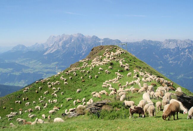 Die Schafe verbringen gemeinsam mit einem Schäfer und seinem Hirtenhund den Sommer am Hauser Kaibling. Nicht nur wir als Bergbahn profitieren davon, wir sparen uns durch die Schafe die maschinelle Pistenpflege mit schweren Geräten, die künstliche Düngung und zudem haben die Schafe genau das richtige Gewicht um Erosionen auf unserer Pistenfläche vorzubeugen.