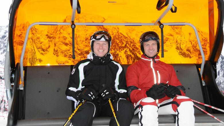 Ex-Formel 1 Star Ralf Schumacher ist noch immer gerne flott unterwegs – vor allem auf den Ski. Er genoss schon viele Skitage auf dem Hauser Kaibling und zählt mittlerweile schon zu den Stammgästen, die regelmäßig ihre Urlaube hier verbringen. Er war auch einer der ersten, der die neue Gipfelbahn testete!