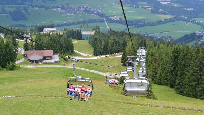 Die Schladminger Tauern-Seilbahn startet direkt im Ort Haus im Ennstal und bringt dich noch bis zum 13. Oktober 2019 auf 1.870 Meter Seehöhe. Die Seilbahn hat täglich von 8:00 bis 12.00 Uhr und von 13.00 bis 16.45 Uhr geöffnet.