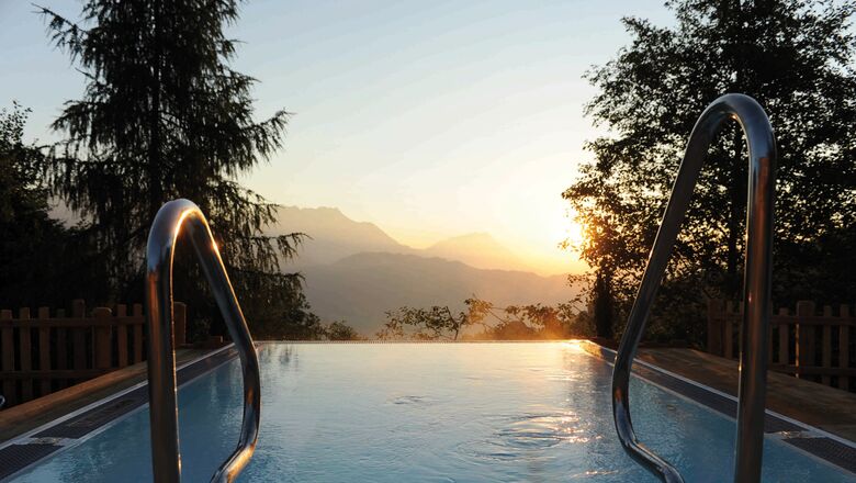 Ein weiteres Outdoor‐Highlight ist zudem der neue Panorama‐Schwebe‐Whirlpool. 12 Personen finden bei 35 Grad Wassertemperatur Platz, um die spektakuläre Aussicht vom Dachstein über den Grimming bis hin zum Ennstal zu genießen. Die besondere Bauweise – nämlich direkt in den Hang gebaut – gibt Badegästen das Gefühl förmlich im Wasser über der umliegenden Umgebung zu schweben. Frontal und ohne Blickgrenzen eröffnet sich einem das ganze Ennstal vor Augen.
