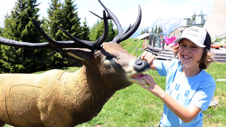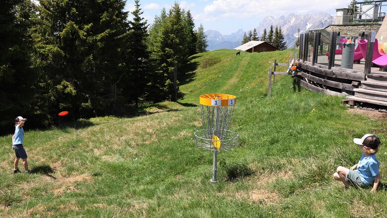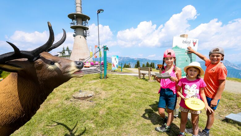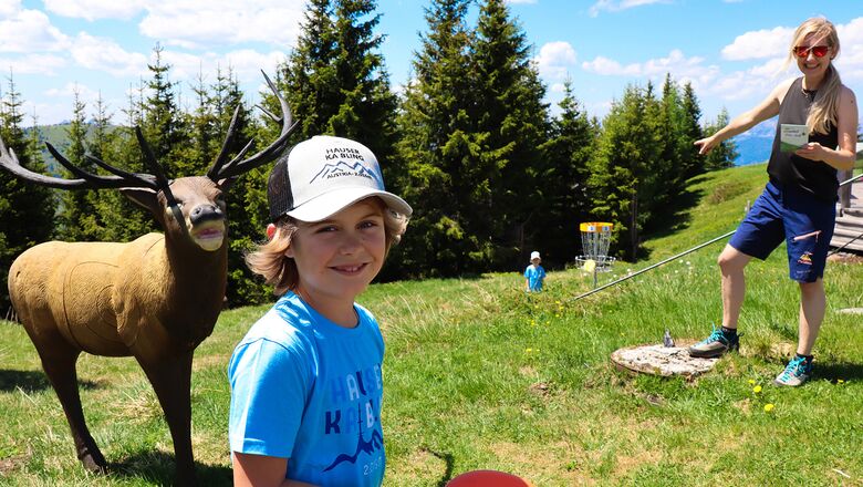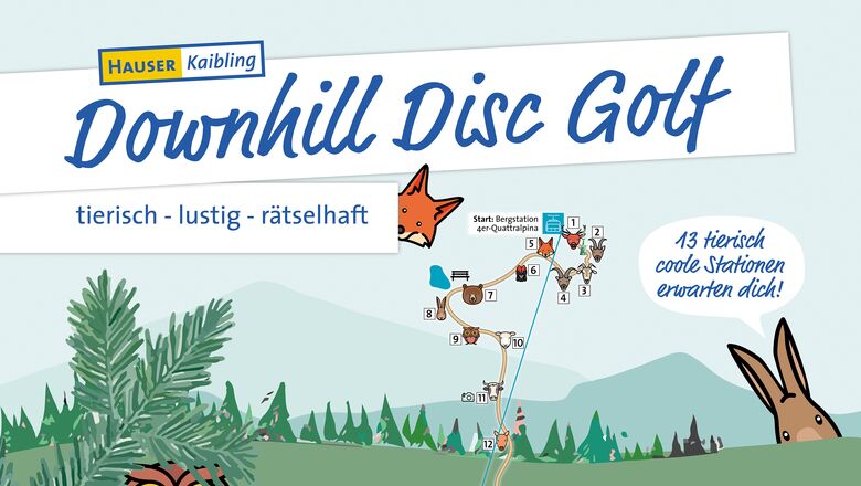 Ein gutes Auge, etwas Geschick und eine Portion Treffsicherheit – wer gewinnt beim Downhill Disc Golf? Heuer geht’s auf unserer Disc Golf-Bahn nicht nur bergab, sondern auch ziemlich rätselhaft zu. Auf dem Weg von der Bergstation Quattralpina auf 1.865m bis runter zur Bergstation 8er-Gondelbahn haben wir 13 tierisch coole Zielkörbe aufgestellt. Murmeltier, Adler, Gämse, Steinbock und Co. stellen dabei nicht nur eure Geschicklichkeit auf die Probe, sondern auch das Köpfchen. An jeder Station warten tolle Rätselfragen rund um die tierischen Alpenbewohner - die ihr in voller Lebensgröße bewundern könnt - auf euch. Im Ziel angekommen, wartet eine leckere Kugel Eis auf dich :-).