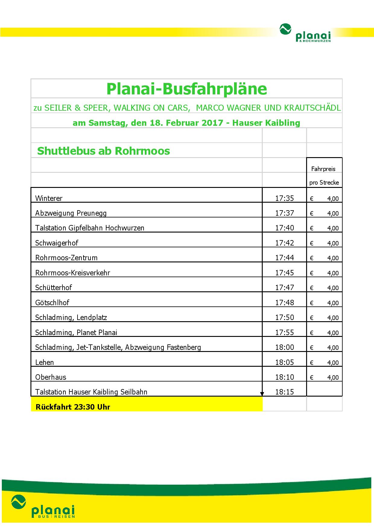 Zu Beginn der Semesterferien in der Steiermark und in Oberösterreich – am Samstag, dem 18. Februar 2017 – steigt am Hauser Kaibling mit gleich 4 Top-Acts wieder das Konzert des Jahres: SEILER & SPEER, WALKING ON CARS, KRAUTSCHÄDL und TURBOBIER und als Special Guests MARCO WAGNER ft. Die Obersteirer werden den Skiberg zum Beben bringen ;) Social Media-Star Marco Wagner feat. Die Obersteirer ergänzen das bestehende Line Up als Special Guests mit ihrem Ö3 Austria Top 40 Hit „Boyfriends" - ein wahres Musik Festival ist zu erwarten ;-)