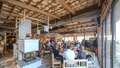 Mit einem Zubau und durchdachter Raumaufteilung haben Wageneder und „Joiner“ Johannes Prettenthaler, der für Planung, Architektur und Umsetzung verantwortlich zeichnete, dem Einkehrschwung ein urig-gemütliches Zuhause gegeben. Echtes Fichten- und Lärchen-Altholz aus abgetragenen Ennstaler Gebäuden dominiert im Inneren des neuen Lokals. Dessen Zentrum bildet eine Bar, von der aus sich ein toller Panoramablick über die Skipiste hinweg ins Ennstal eröffnet. Weitere bauliche Highlights sind eine kleine „Almhütte in der Hütte“, ein Kamin mit echtem Feuer und ein Tischherd.