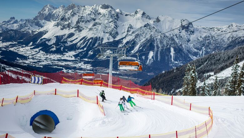 Wer eine spannende Abwechslung zum klassischen Carvingschwung sucht, wird auf der XXL Funslope in der Kaiblingalm fündig. Mit sagenhaften 1.460 Metern Gesamtlänge ist sie derzeit eine der längsten Funslopes in Österreich. Bekannte Elemente aus Piste, Snowpark und Cross wurden ebenso geschickt kombiniert wie Steilkurven, Tunnel, Bodenwellen und kleine Sprünge.