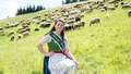 - Hirten mit Hütehund und ihrer großen Schafherde