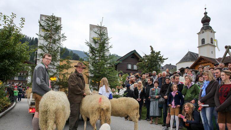 Die Hauser Kaibling Schafe sind beim Umzug Gast beim Bezirks-Ernte-Dank-Fest!