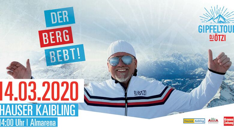 Aprés Ski der Sonderklasse, Open Air Feeling und eine garantiert grandiose Show erwartet uns am Sonntag, 14. März 2020 ab 14 Uhr bei der DJ Ötzi Gipfeltour an der Hauser Kaibling Talstation - direkt vor den Toren der AlmArenA! EINTRITT FREI!