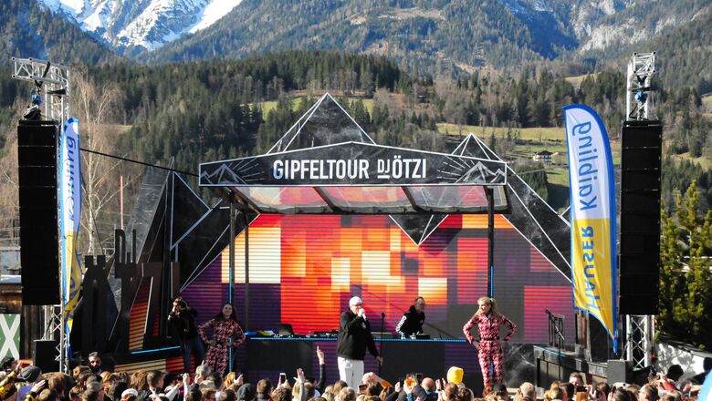 Ob auf der Panorama-Dachterrasse der AlmArenA oder so nah wie möglich an der Bühne: Die Fans von DJ Ötzi kommen voll auf ihre Kosten, kein Hit fehlt und nach dem eineinhalbstündigen Konzert begeistert er sein Publikum mit einem feinen DJ-Set.
