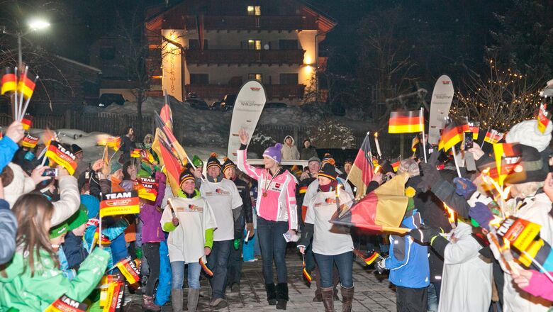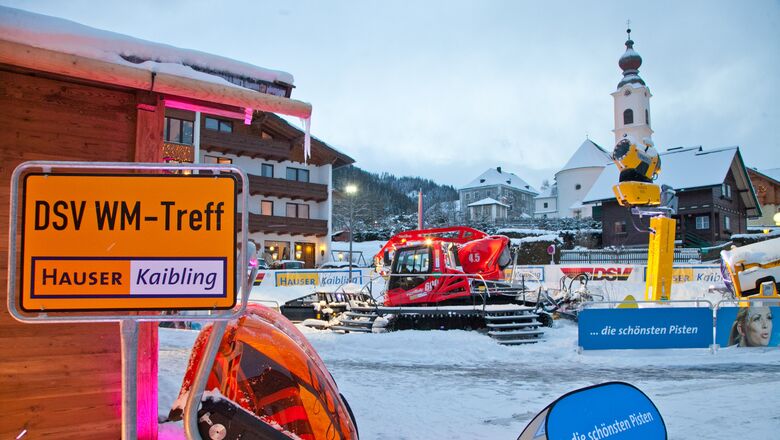 Als Gastgeber für den „DSV WM-Treff Hauser Kaibling” war Haus im Ennstal offiziell „Fangemeinde” für Deutschland. Daher wurde das gesamte Ortsbild in die die Farben schwarz-rot-gold getaucht: Die Ortstafeln wurden ein wenig umgestaltet, Fahnen schmückten Straßen und Häuser, ein deutsch-österreichischer Literaturabend ging über die Bühne... „Es war wirklich traumhaft zu sehen, wie sehr alle in der Gemeinde mitgefiebert und mitgetan haben”, zeigte sich Arthur Moser, Geschäftsführer des Hauser Kaiblings, stolz auf diese Kooperation und auf sein Team, dessen unermüdlicher Einsatz diese Zusammenarbeit mit dem DSV überhaupt erst möglich gemacht hat.