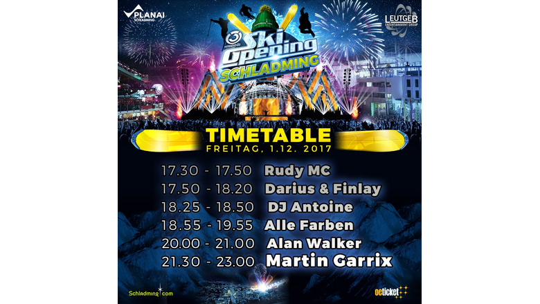 Im Rahmen des 11. Schladminger Ski-Openings von 1. bis 3. Dezember 2017 wird Star-DJ Martin Garrix, der Nummer 1 DJ der Welt, am Freitag, den 1.12.2017 gemeinsam mit tausenden Ski- und Musikbegeisterten den Winterstart in Schladming feiern!
