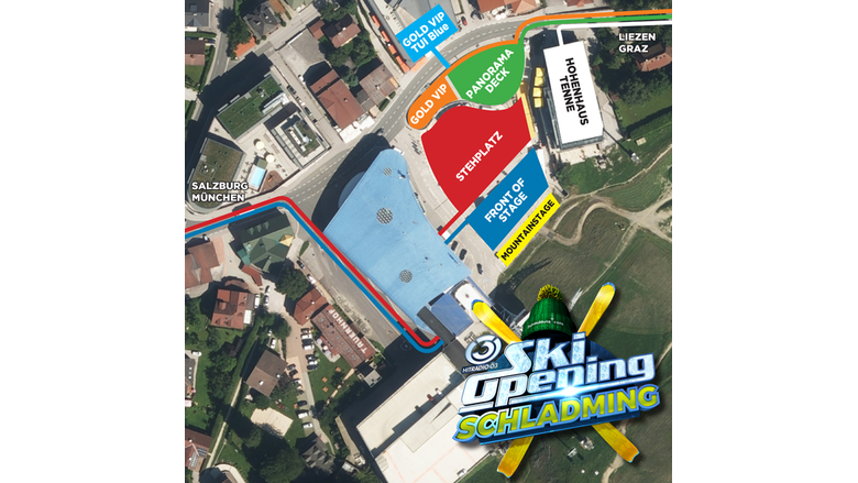 Die Bühne wird beim diesjährigen Ö3-Ski-Opening ein ganz besonderes Highlight. Das einzigartige Erscheinungsbild besticht im Design der 4-Berge-Skischaukel (Planai, Hochwurzen, Reiteralm, Hauser Kaibling). Blickfang ist eine 5 Meter hohe Planai Pommelhaube. Eine 300m2 große LED-Wall und 350 Spots lassen den Planai Zielhang und die Bühne in allen Farben strahlen. Für einen zusätzlichen Überraschungseffekt auf der fulminanten Bühne wird eine Pyrotechnik- und Lasershow sorgen.