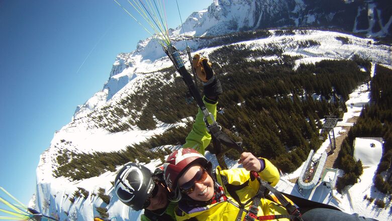 Du fliegst als Passagier mit einem Tandemparagleiter. Ein großartiges Flugerlebnis!