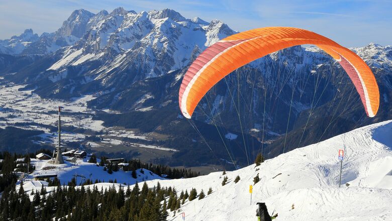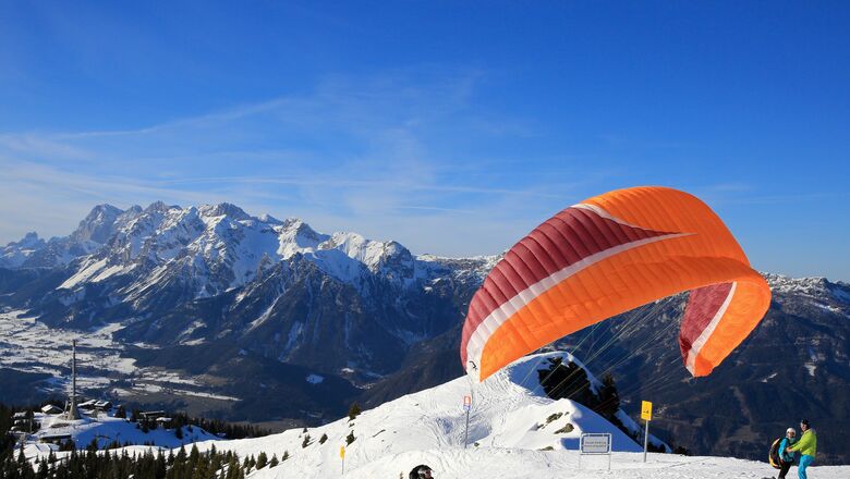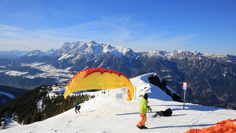 Von Dezember bis März bieten wir Euch phantastische Tandempassagierflüge vom Hauser Kaibling in der Top Wintersportregion Schladming Dachstein! Du fliegst vom höchsten Gipfel der Schladminger 4 Berge Skischaukel im Skigebiet Amade!