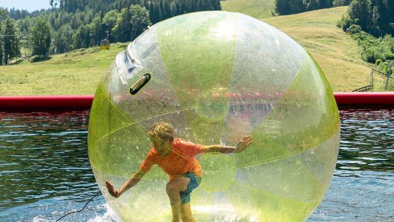 Übers Wasser laufen? Ganz ohne nass zu werden? Was nach einem biblischen Wunder klingt, ist ein toller Sommerspaß für Groß und Klein. In unseren Wasserbecken könnt ihr in riesige Bälle steigen und einfach übers kühle Nass spazieren.