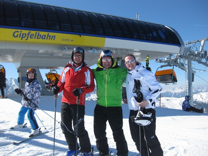 Raiffeisen Salzburg Generaldirektor Dr. Günther Reibersdorfer, Gerry Friedle alias DJ Ötzi und Hauser Kaibling-Chef Arthur Moser genossen am Wochenende die traumhaften Bedinungen am Hauser Kaibling.