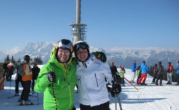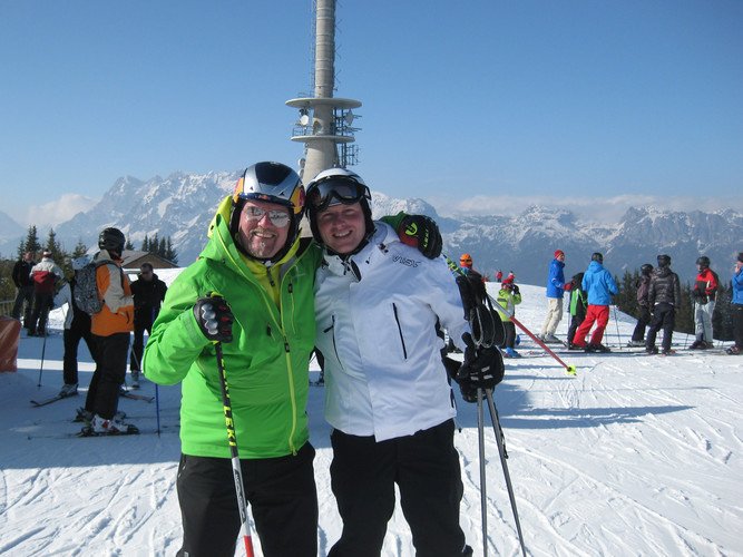 Gerry Friedle alias DJ Ötzi und Hauser Kaibling Chef Arthur Moser genossen den Sonnenskilauf am Hauser Kaibling.