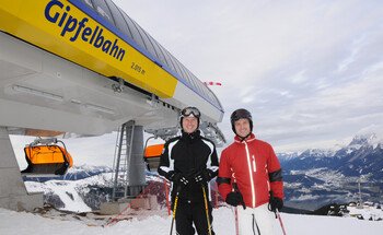 Sehr beeindruckt zeigt sich Ralf Schumacher von der neuen Gipfelbahn auf 2.015m. "Es war ein tolles Erlebnis, die neue Gipfelbahn mit den orangen Wetterschutzhauben ist eine sehr gut gelungene Attraktion und es ist kaum zu glauben, dass so ein Projekt in nur 80 Tagen realisiert werden kann!" so der begeisterte Ex-Formel 1 Star.