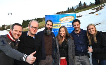 Bildtext: Die deutsche Band "Wir sind Helden" mit Hauser Kaibling Geschäftsführer Arthur Moser (li.) und Marketingleiterin Carina Resch (re.).